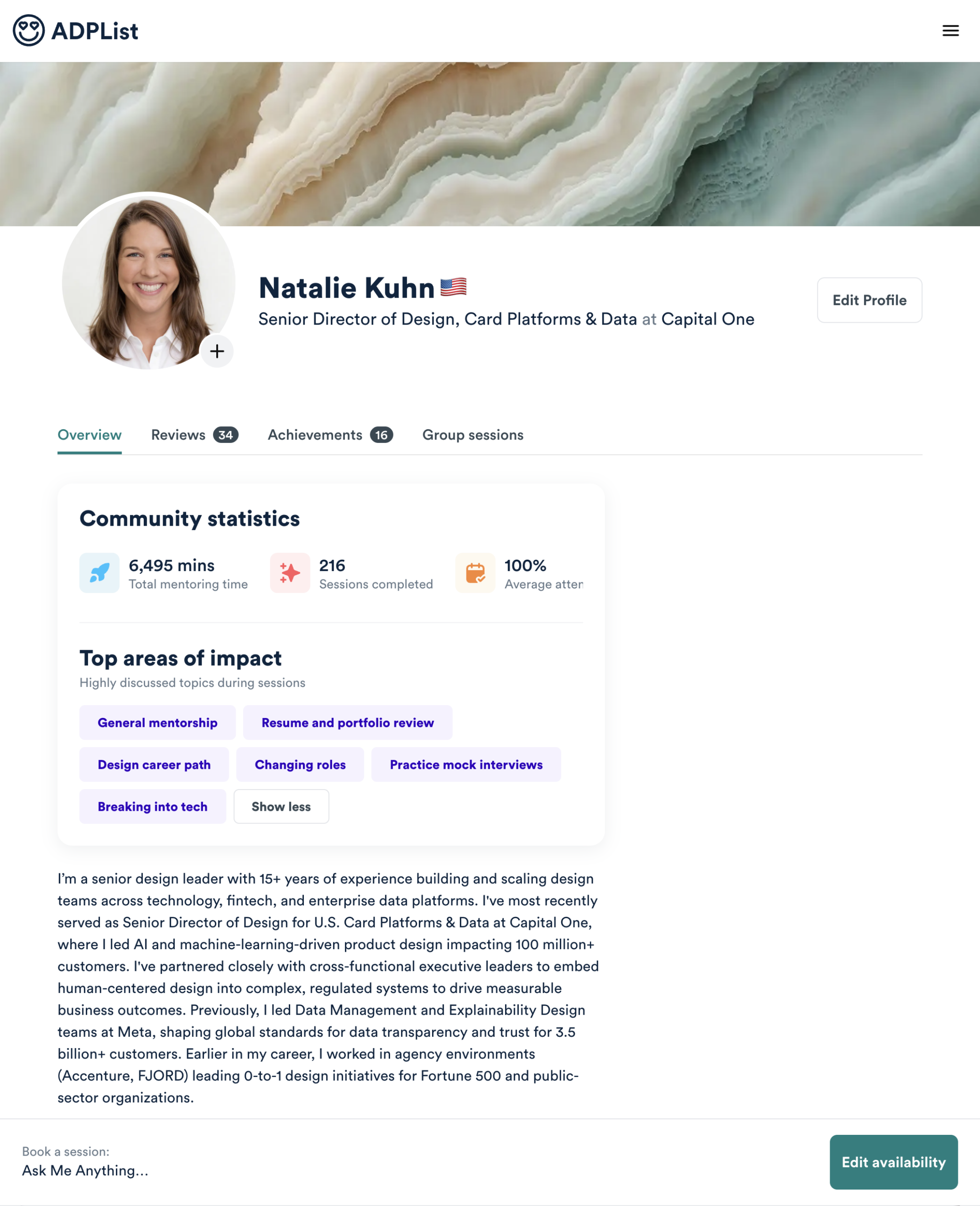 I’ve mentored on ADPList for the longest time so you can see a listing of mentee reviews and feedback. I have paid options for one-off and long term sessions here.
