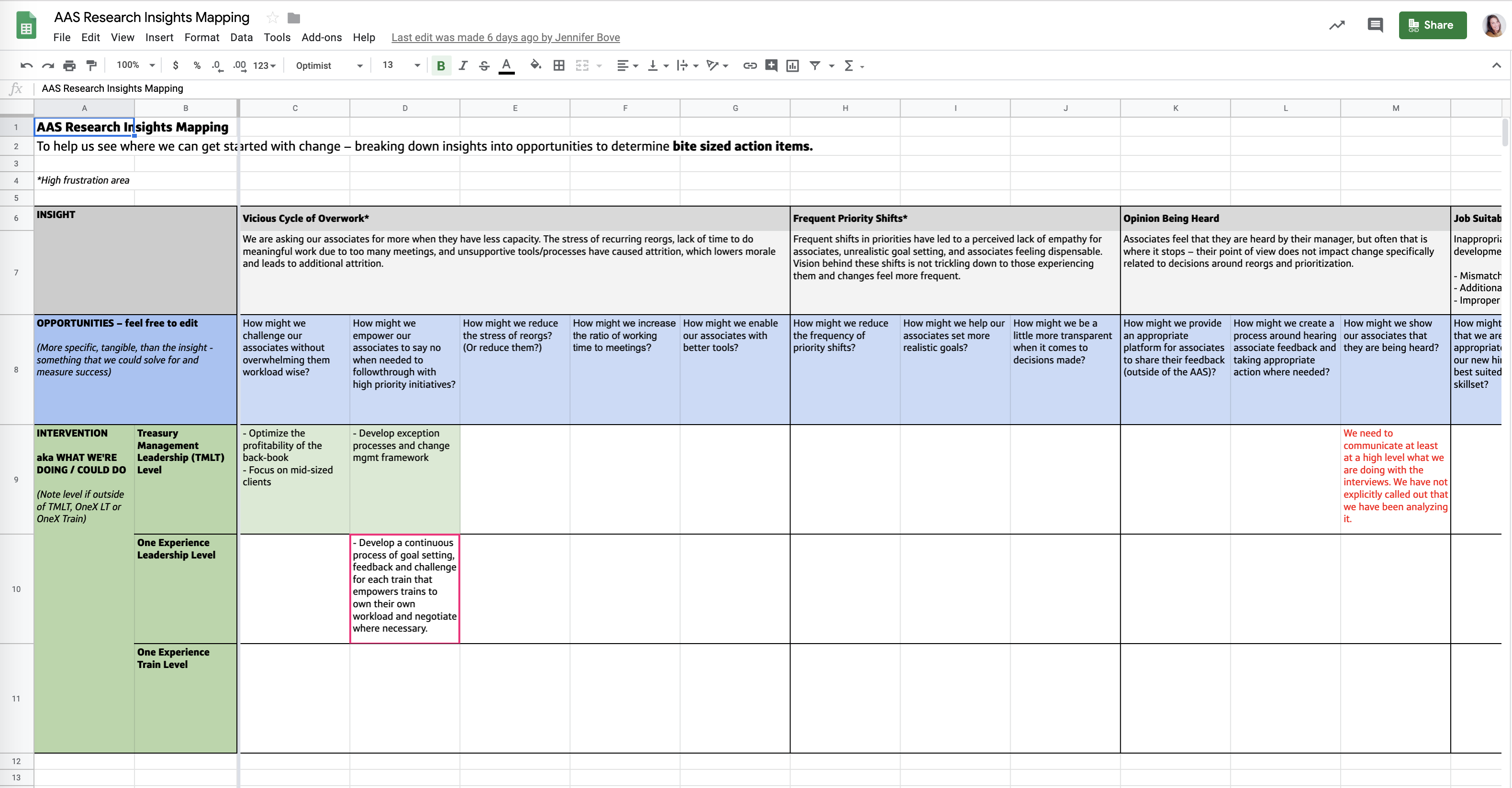 Six research themes that guided the definition of a series of incredibly intentional initiatives as well as a toolkit to teach other teams how to use this approach. Initiatives touched processes, organizational structure, communication patterns, and training programs. Work continues today in applying this approach and learnings.