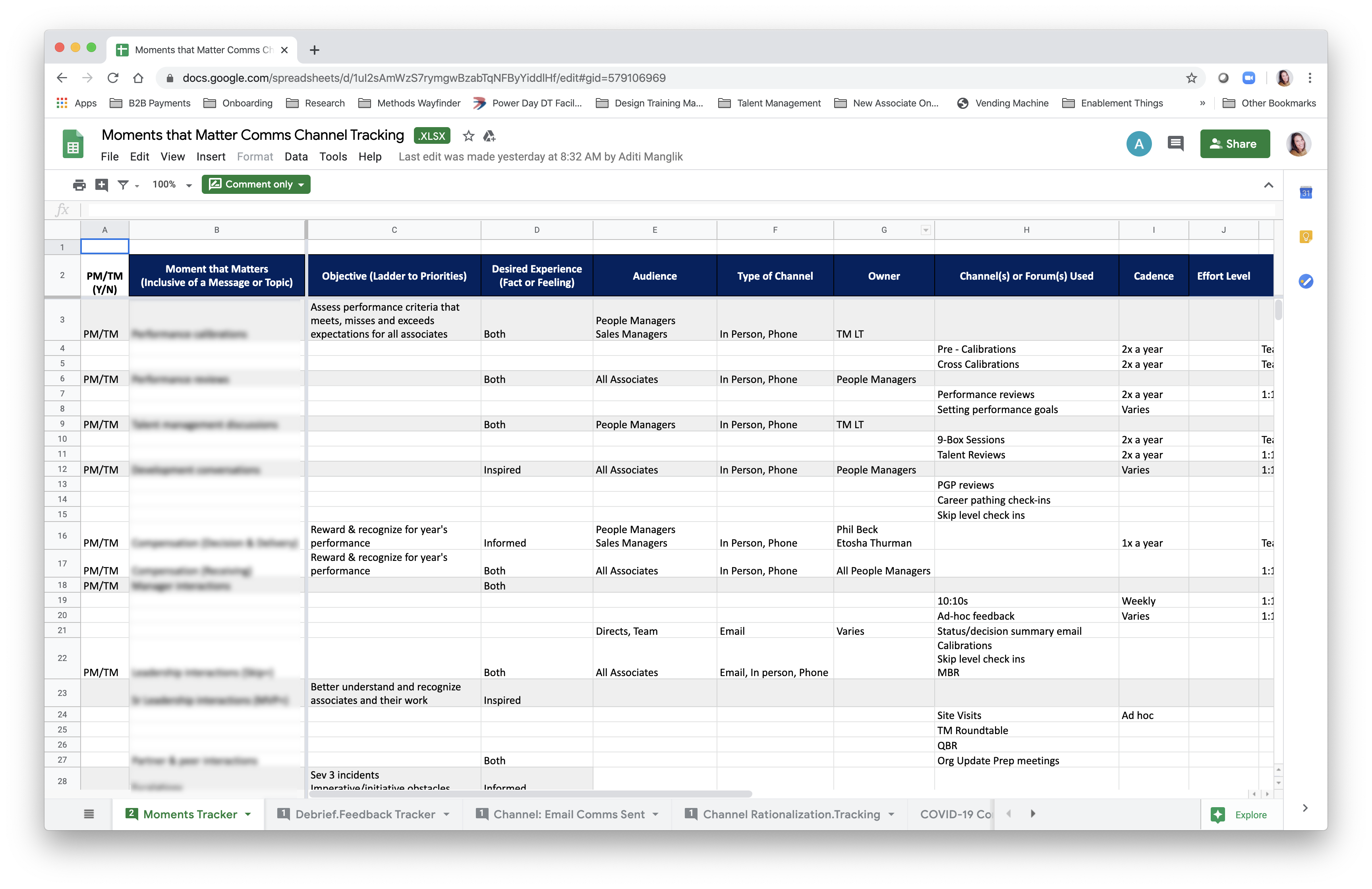 Separately I was also involved in a research project dedicated to understanding associate perspective around talent management for end of year calibrations.