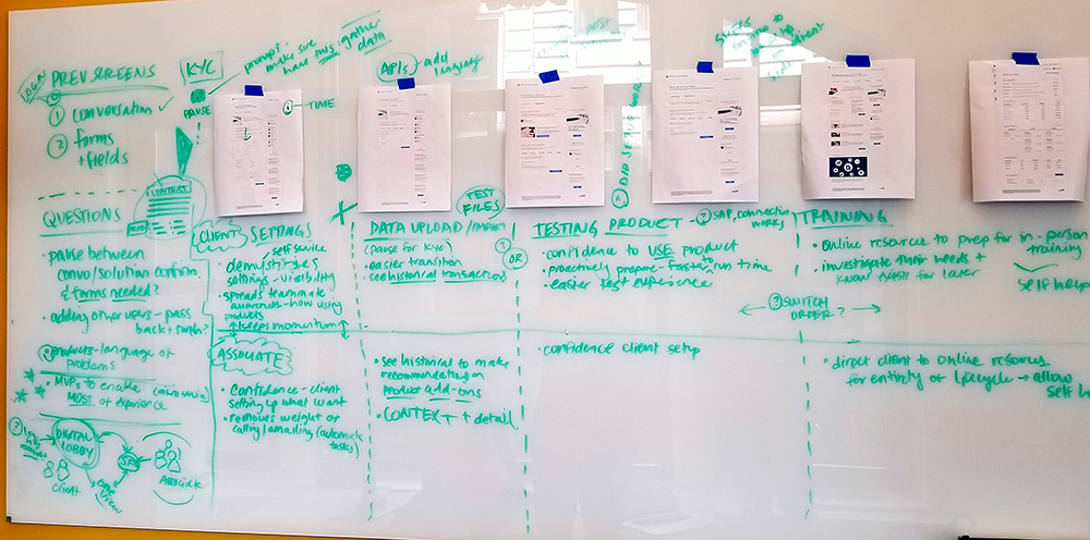 I was the design leader for one of the three forty-person Agile trains within what was then called One Experience. OneX aimed to define a product strategy across Treasury Management, Card, and Credit product teams within the Commerical Bank. One clear strategic bond between the space was onboarding. If we could show the value in working together in onboarding we could better sell the value of workin together in other new, creative ways.